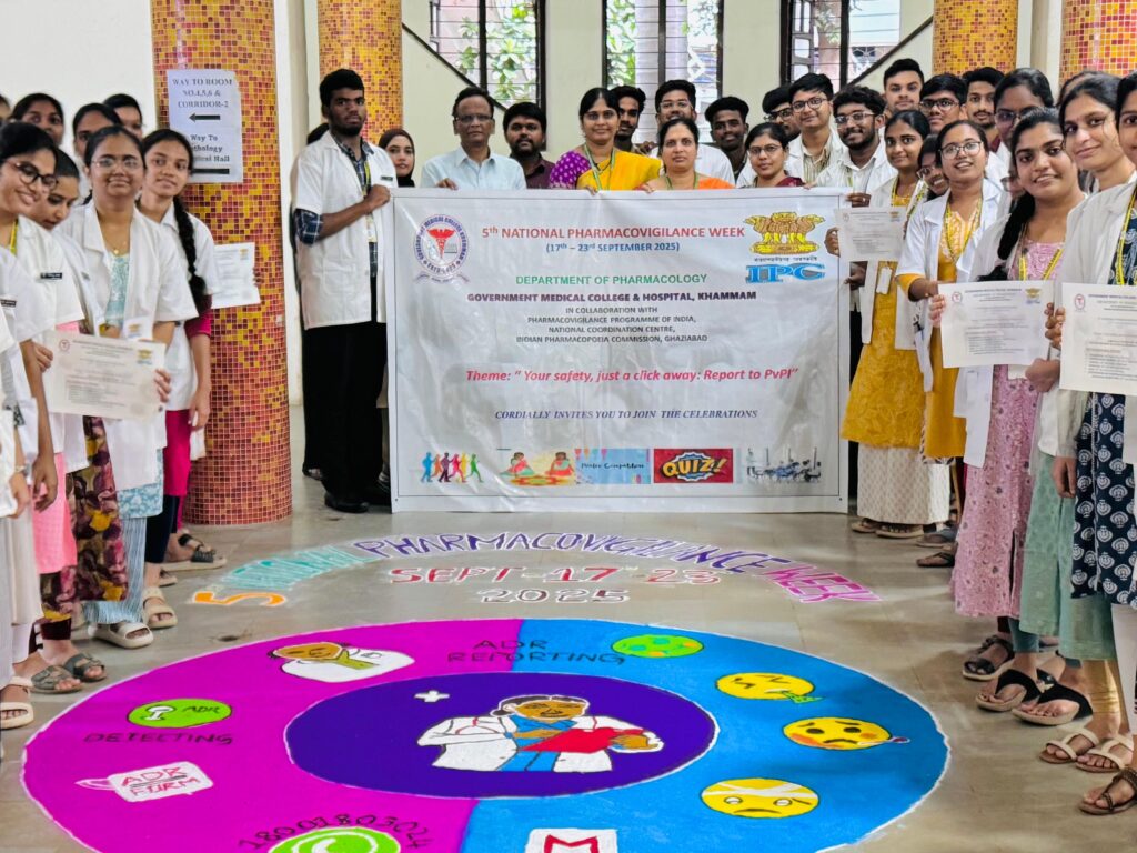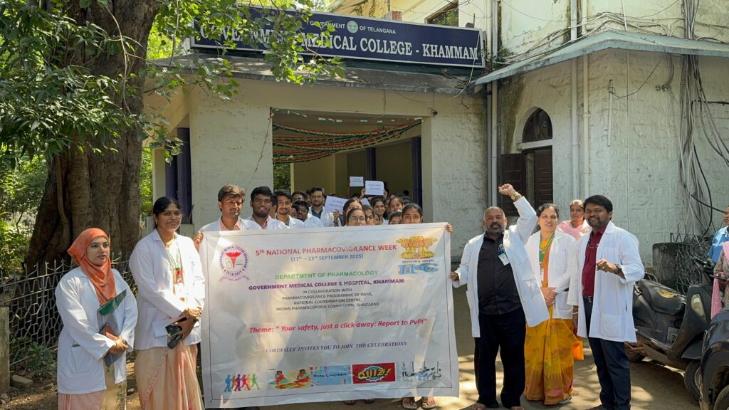 Government Medical College, Khammam, successfully hosted Pharmacovigilance Week 2025 from September 17 to 23, highlighting the critical importance of drug safety. The week-long initiative, themed “Your Safety, Just a Click Away: Report to PvPI”, aimed to empower students, healthcare professionals, and the community to actively participate in reporting Adverse Drug Reactions (ADRs) and ensuring safe medication practices.